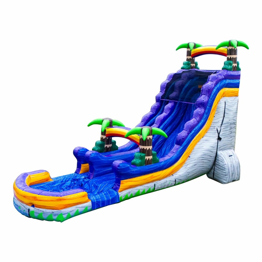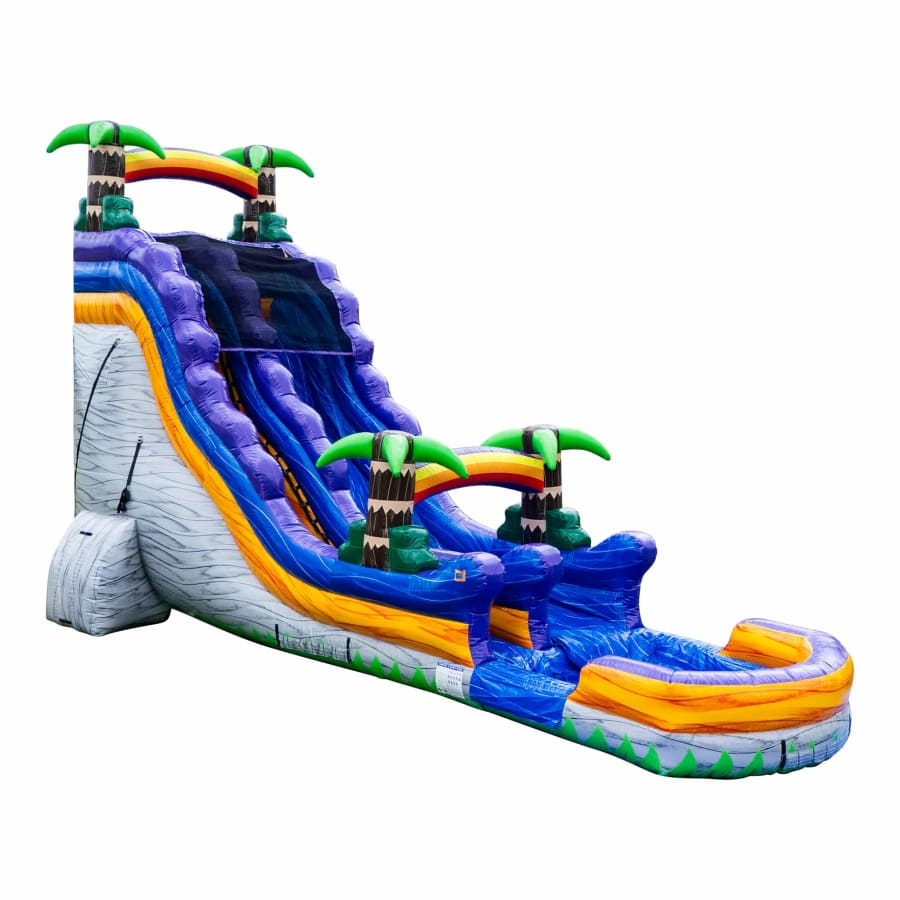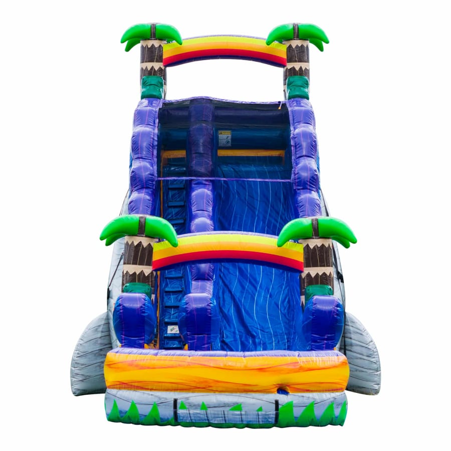 With its towering height and smooth single-lane design, this slide keeps lines moving and guests smiling. Its vibrant colors and clean, professional finish make it a standout addition to any event setup, while its wet/dry capability ensures it's working hard, no matter the weather.
